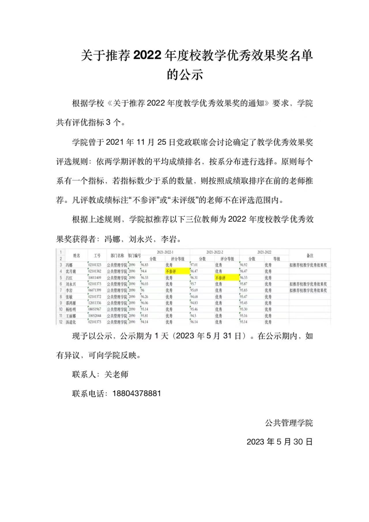 pg电子官方网站关于推荐2022年度校教学优秀效果奖名单公示
