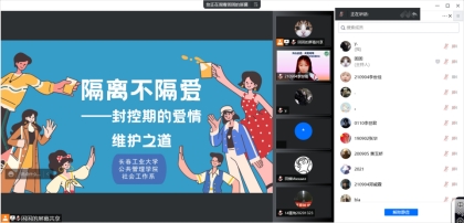 2022年4月23日19:40,pg电子官方网站开展第九场主题为《隔离不隔爱——封控期的爱情维护之道》大学生校园主题沙龙。本场活动邀请到张敏老师作为特约嘉宾,一起来和同学们谈谈如何维系甜蜜美好的爱情。