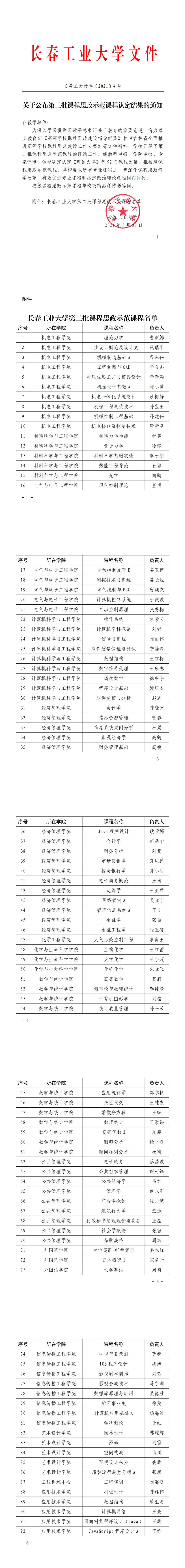 第二批课程思政示范课程名单