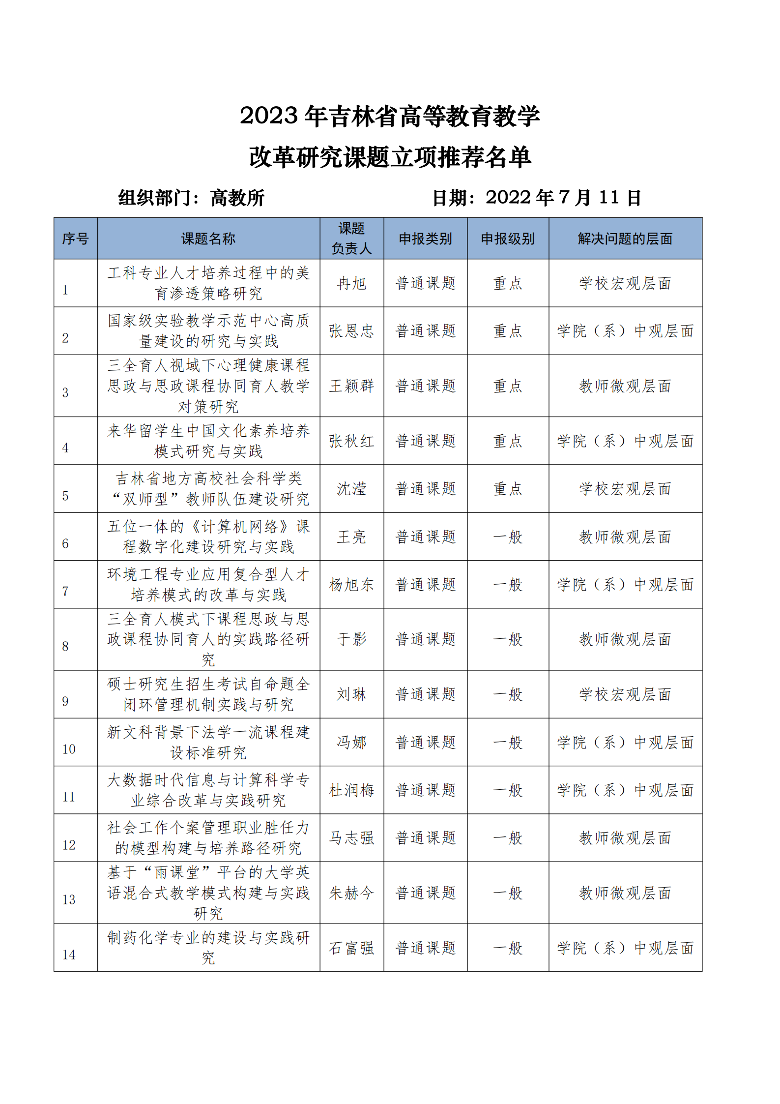06 pg电子官方网站省高等教育教学研究课题推荐名单