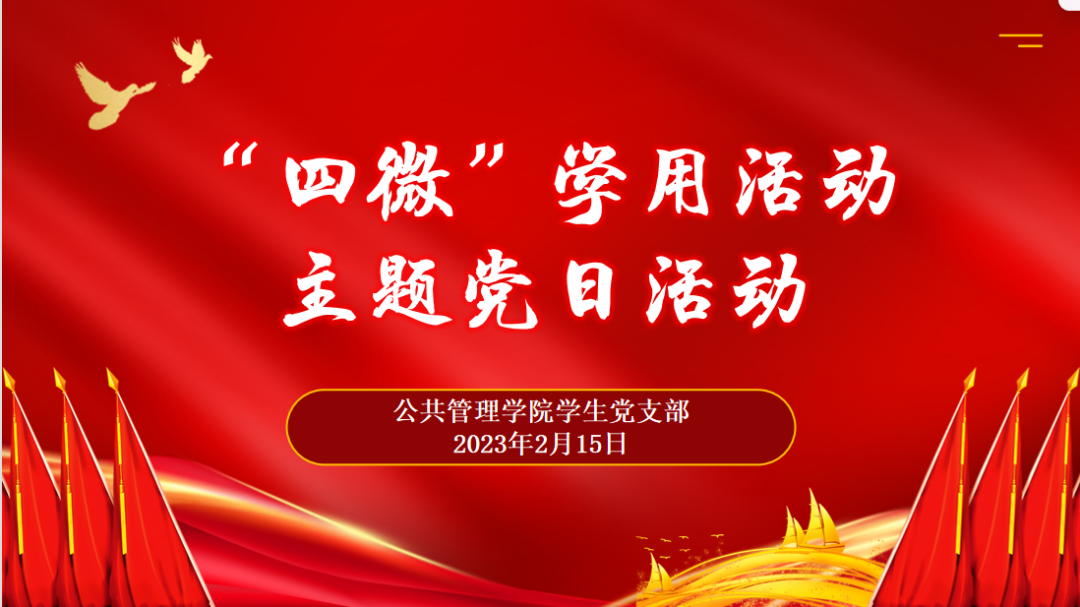 为深化青年党员思想政治指引,增强党员履职尽责、先锋模范、优质服务的意识和能力,不断推动党员以知促行、以行求知的良好积极氛围。2023年2月15日,pg电子官方网站学生党支部全体党员于线上开展“四微”学用活动主题党日活动。