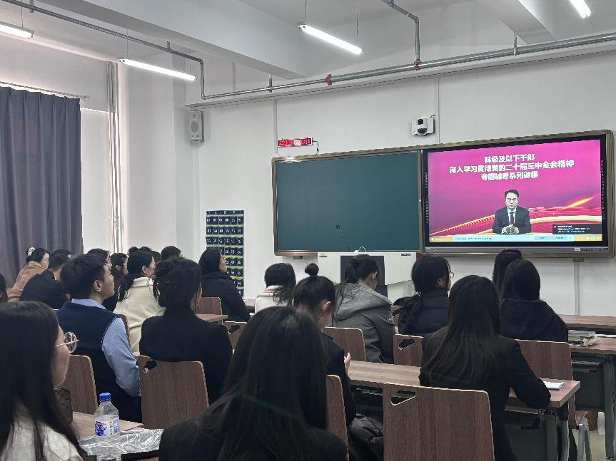 2024年11月7日,研究生第一党支部积极响应党中央关于加强理论学习的号召,成功举办了一场以“学习贯彻党的二十届三中全会精神专题”为主题的专题理论学习会。此次学习通过观看专题辅导系列课程,旨在通过系统学习党的最新理论成果,提升支部成员的政治理论水平和党性修养,为更好地服务人民、推动社会发展奠定坚实的思想基础。