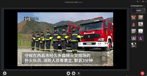 首先,大家共同为抗疫烈士与烈火英雄默哀。张宇航同学引用习总书记的“理想之光不灭,信念之光不灭。我们一定要铭记烈士们的遗愿,永志不忘他们为之流血牺牲的伟大理想”指出,英雄来自人民,人民崇敬英雄。