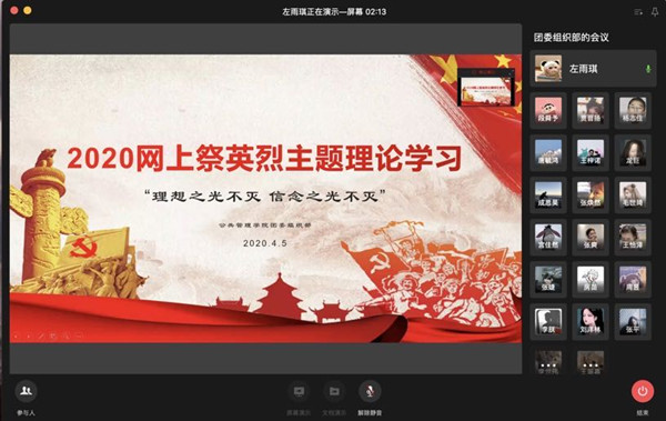 学院网讯(通讯员 张宇航)为深入贯彻学习习近平总书记关于防控新冠肺炎疫情及英烈褒扬的重要论述和指示精神,教育引导青年学子深刻铭记革命先烈光荣事迹,继承和发扬革命先烈优秀传统。2020年4月4日-4月5日,pg电子“求是”理论社团通过网络平台开展清明网上祭英烈“理想之光不灭,信念之光不灭”主题理论学习系列活动。学院团委副书记张宇航同学主持,全体成员参加学习。