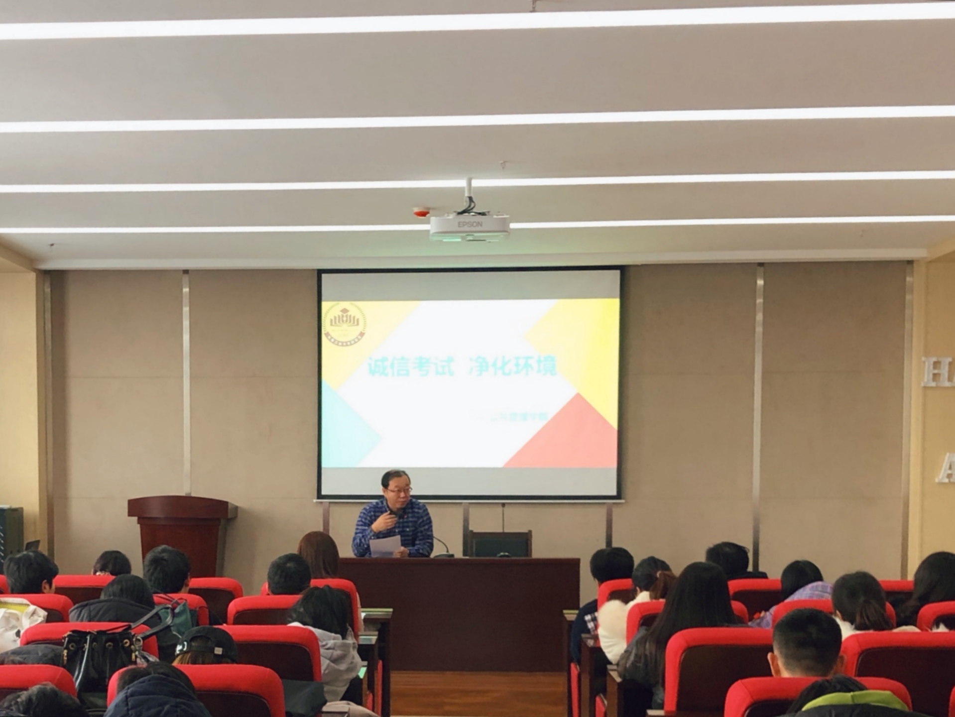 学院网讯 为了迎接即将到来的2019年12月20日大学生英语四六级考试和2019-2020学年上学期期末考试,pg电子官方网站于2019年12月11日在北湖校区报告厅举行了“诚信考试净化环境”主题教育大会。本次会议主讲人学院党委副书记钟诚面向参会的研究生发表了讲话。