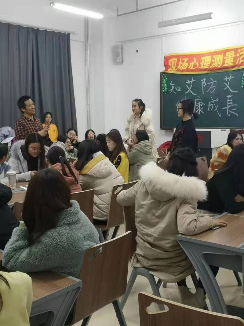 赵君老师给大家做了“高校防艾我参与,健康中国我行动”的专题讲座。他从目前艾滋病病理、流行趋势、预防和关爱艾滋病病人等方面,引导大学生加强性生殖健康教育,科学预防性病、艾滋病,提升自我防护能力。通过同伴教育、讲解暴露前、暴露后预防等措施,让大学生了解集“宣教、干预、检测”一体化的社会综合服务模式的作用。