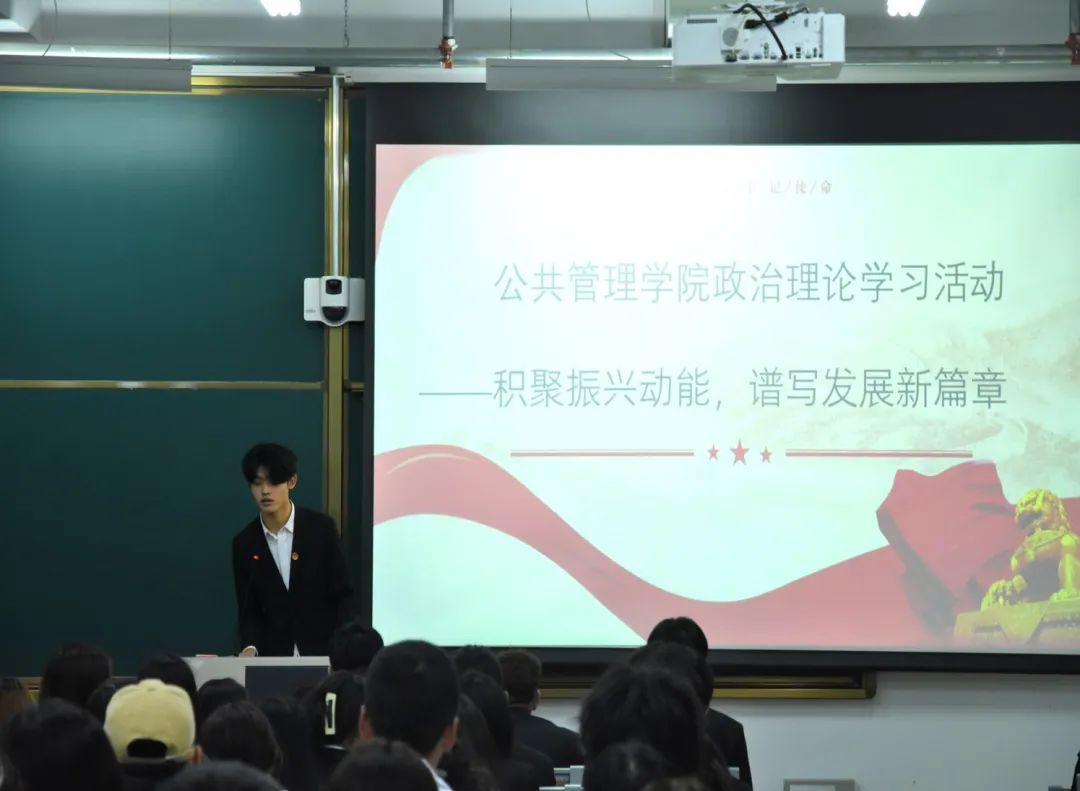 脚踏东北土地,关切东北全面振兴发展,为了深入学习贯彻习近平总书记关于东北全面振兴座谈会重要讲话精神,对东北振兴有更进一步的认识与了解,牢牢把握东北在维护国家“五大安全”中的重要使命,切实提高学生思想政治理论水平,努力培养堪当民族复兴重任的时代新人,pg电子官方网站理论自学组织于11月1日14点30分自发开展了第三次理论学习,本次理论学习在北湖东校区主楼101阶梯教室召开,参与本次学习的理论自学小组共计153人。本次理论学习由宣传部梁轩瑞领学。