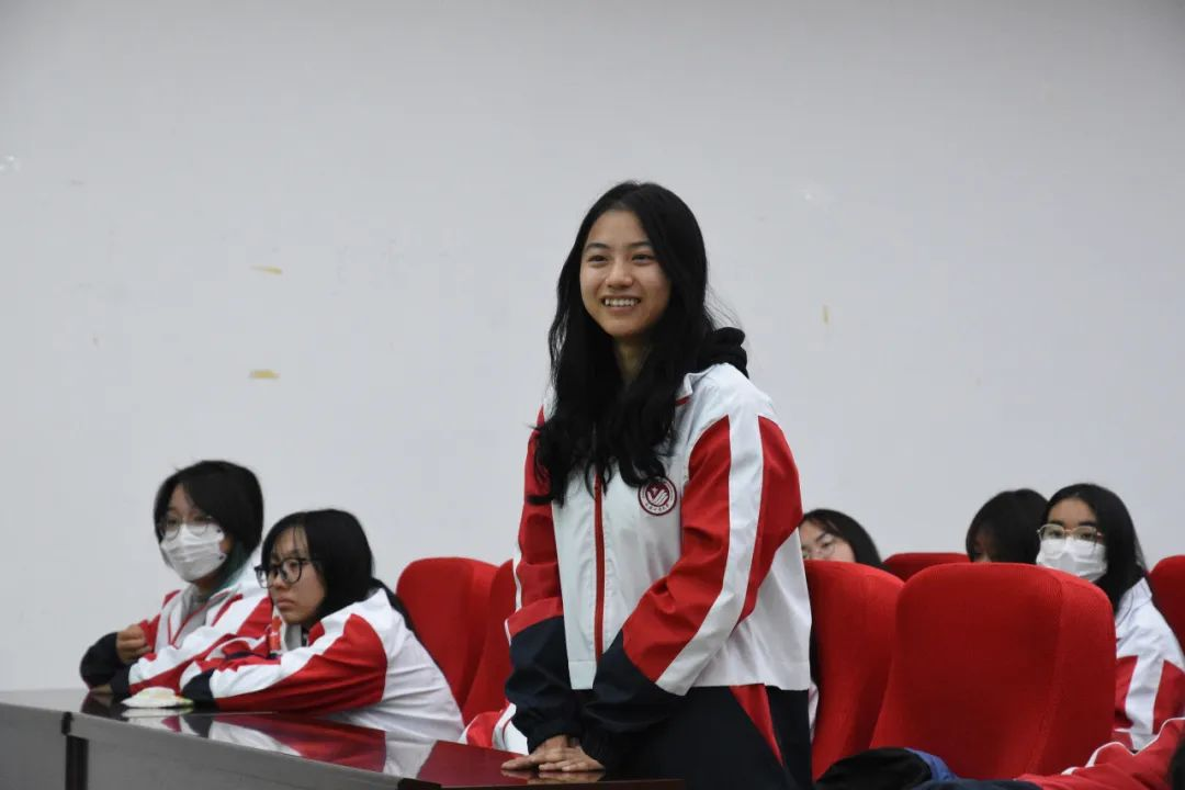 陈辛妮结合学习贯彻习近平新时代中国特色社会主义思想和党的二十大精神,讲述自己的学习成长故事,分享了自己在学业、生活、志愿服务、社会实践、学生工作等经历和经验。她建议学弟学妹要做好对未来大学生活的规划,多思考、多总结,积极参加校园文化活动、科研竞赛活动、社会实践活动,在实践锻炼中沉淀担当,在知行合一中淬炼初心。并通过互动问答、交流研讨的方式给学弟学妹们答疑解惑。陈辛妮表示,自己深知现在的殊荣并不是个人努力的结果。是党和国家的政策、学校学院的培养、老师的谆谆教诲、同窗的鼓励陪伴和脚下这片热土的养育,共同塑造出今天自信、不断进步的她,鞭策她走好脚下每一步路,努力为学院、学校、社会作出力所能及的青春贡献。作为新时代好青年要始终坚定理想信念,发扬艰苦奋斗的优良作风,做前进道路上的奋进者、开拓者、实践者,不负青春,不负韶华,不忘初心,锐意进取。