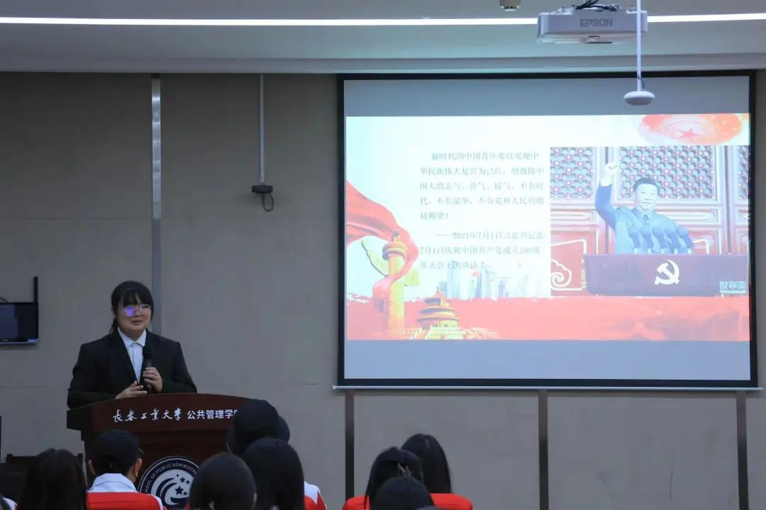 在宣讲会上,陈辛妮和23级本科新生共同学习了习近平总书记关于青年的重要论述和深情寄语。