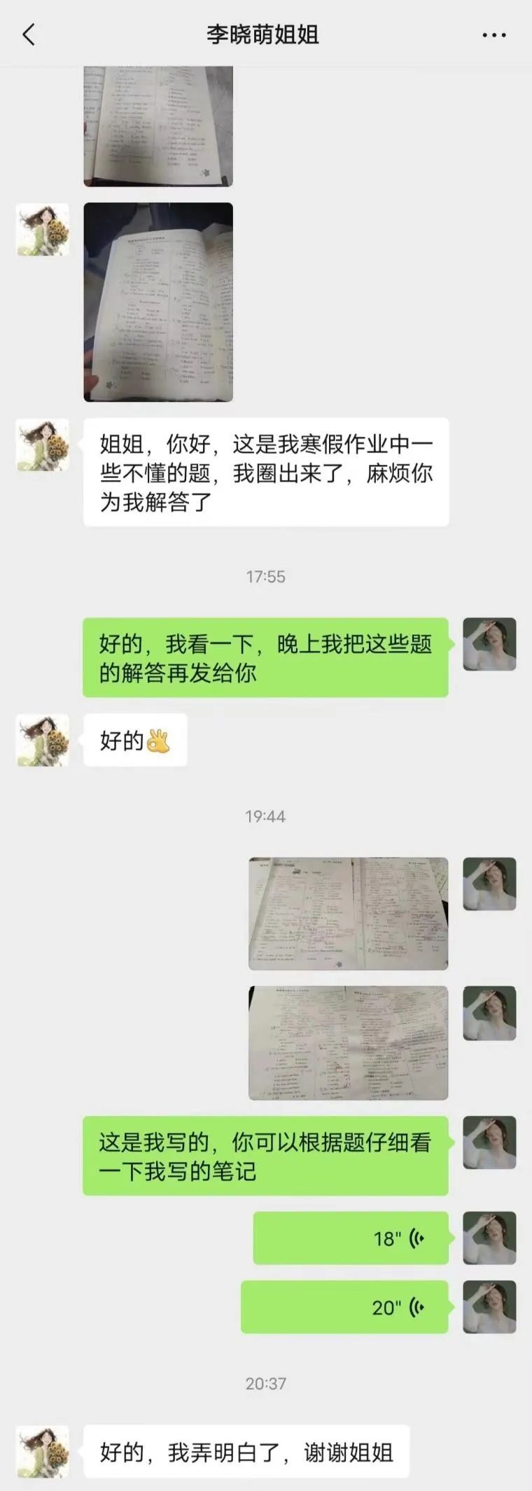 活动开展以来,pg电子一批政治觉悟高、业务素质好的优秀青年积极主动报名参加,并在第一时间完成结对子。“学伴+”志愿者们根据服务对象年级、学科、主要学业帮助诉求等,组建“一对一”、“多对一”的学业帮帮团,通过微信、QQ等即时通讯软件,及时解答服务对象学业问题,用热情与真诚践行志愿精神,得到了学生家长和学生们的一致认可和好评。接下来让我们一起看看pg电子官方网站“学伴+”志愿者们的伴学故事与心声。
