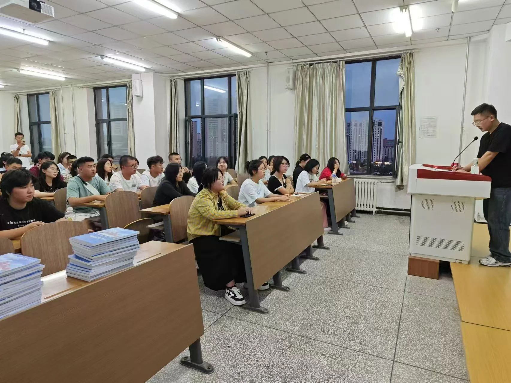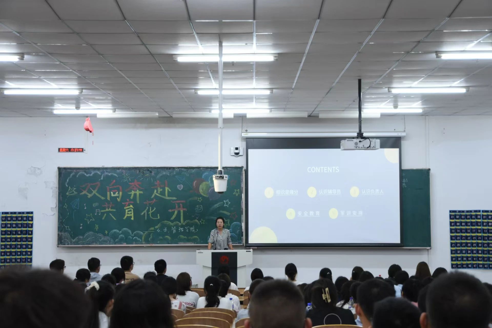 新生见面会后,各班召开班会,班会上新生们通过击鼓传花的形式进行自我介绍。每位新生上台简要介绍了自己的家乡、兴趣爱好以及对未来大学生活的期望。通过这个环节,新生们打破了彼此间的陌生感,增进了彼此之间的了解,现场气氛热烈,欢声笑语不断。