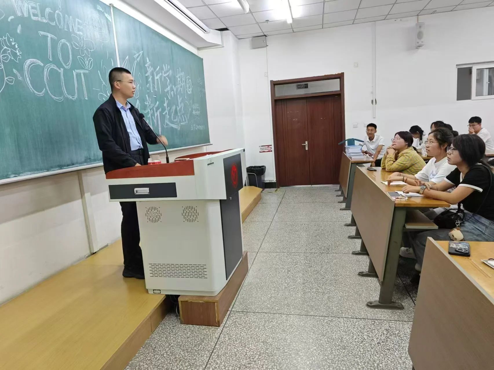 解答完后,崔老师将各班班代依次介绍给2024级新生同学,各班班代在进行自我介绍的同时,也表达了自己对新入学同学们的美好祝愿,希望同学们能在日后的大学生活中勤勉上进,有所成就。