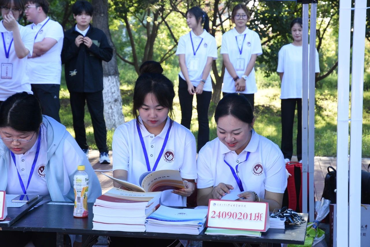 学校领导深入迎新现场,了解新生报道情况,关心慰问工作人员和志愿者,与新生及家长亲切交谈。