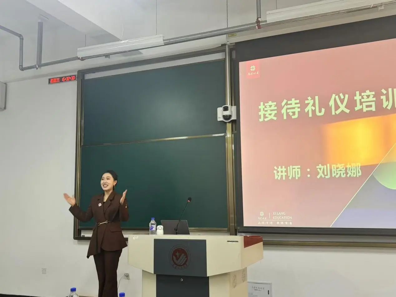 本网讯(学生通讯员 冷若宁)为了迎接即将到来的pg电子官方网站30周年院庆,让团学组织工作人员和院庆活动志愿者,通过专业的指导和实践,掌握商务场合中的礼仪规范,提高志愿服务的质量,同时提升个人形象和气质,增强自信心和交往能力,12月4日在东区主楼101教室,学院邀请专业的商务礼仪培训老师,为大家进行了一场精彩的商务礼仪培训。