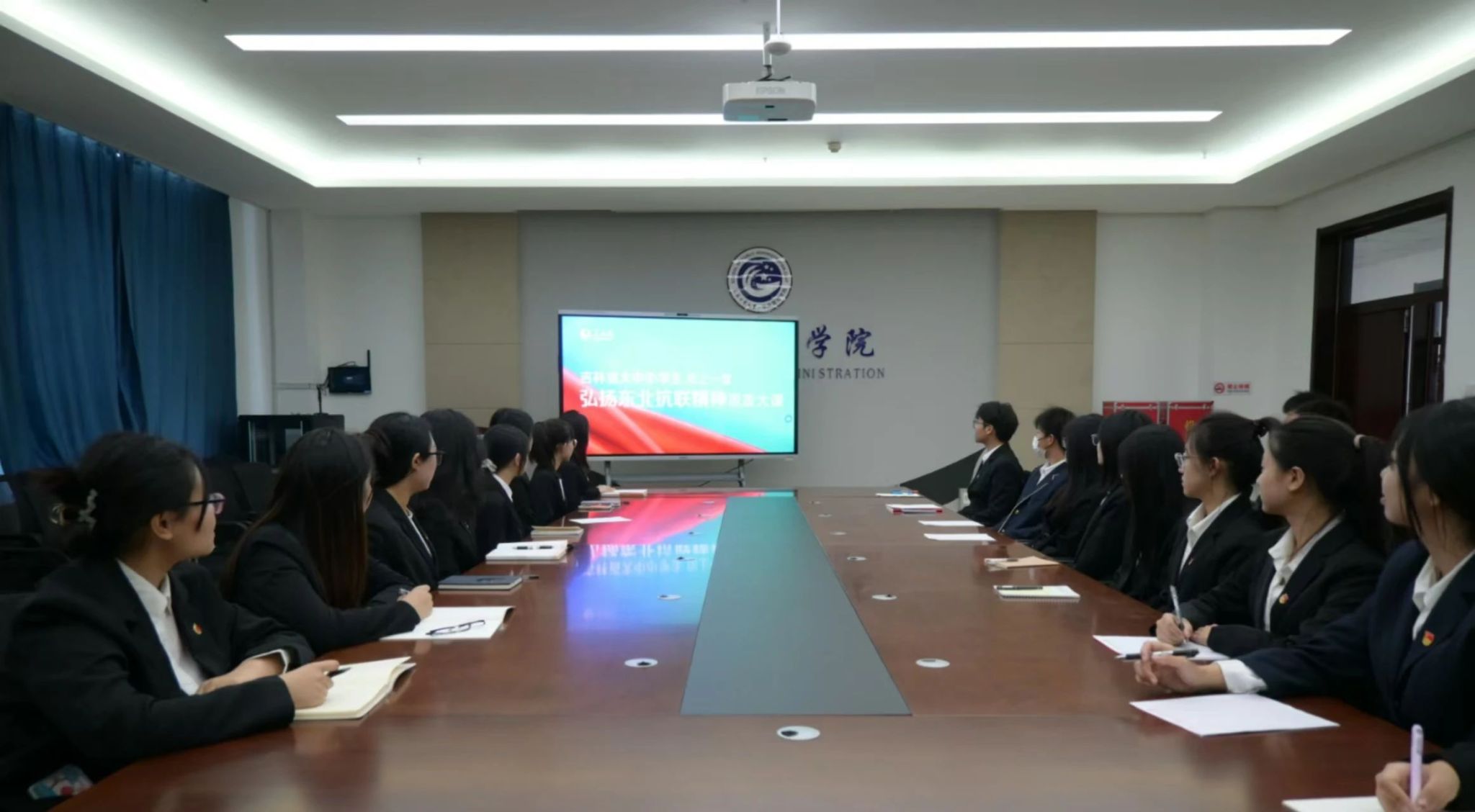 为深入学习东北抗联精神,传承红色基因,弘扬革命精神。9月25日下午14:00,pg电子官方网站理论自学小组在北湖东校区主楼401会议室观看由吉林省教育厅联合吉林杨靖宇干部学院、人民网共同打造“赓续红色血脉,争做时代先锋”弘扬东北抗联精神思政大课。