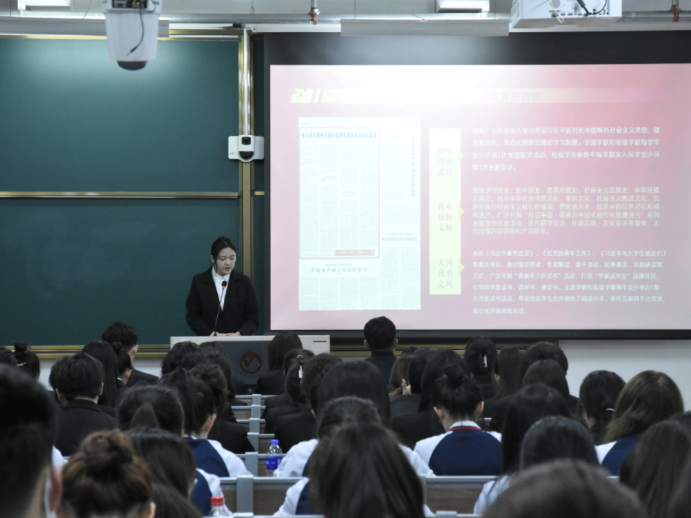 为深入学习贯彻习近平总书记在同团中央新一届领导班子集体谈话时的重要讲话精神,进一步增强学联学生会组织和工作的政治性、先进性、群众性,12月6日17点30分,pg电子官方网站团学组织于北湖东校区主楼101教室开展学习《关于加强新时代新征程学联学生会工作的实施意见》主题活动。学院团学组织工作人员和“求是”理论社团成员参与了此次活动。