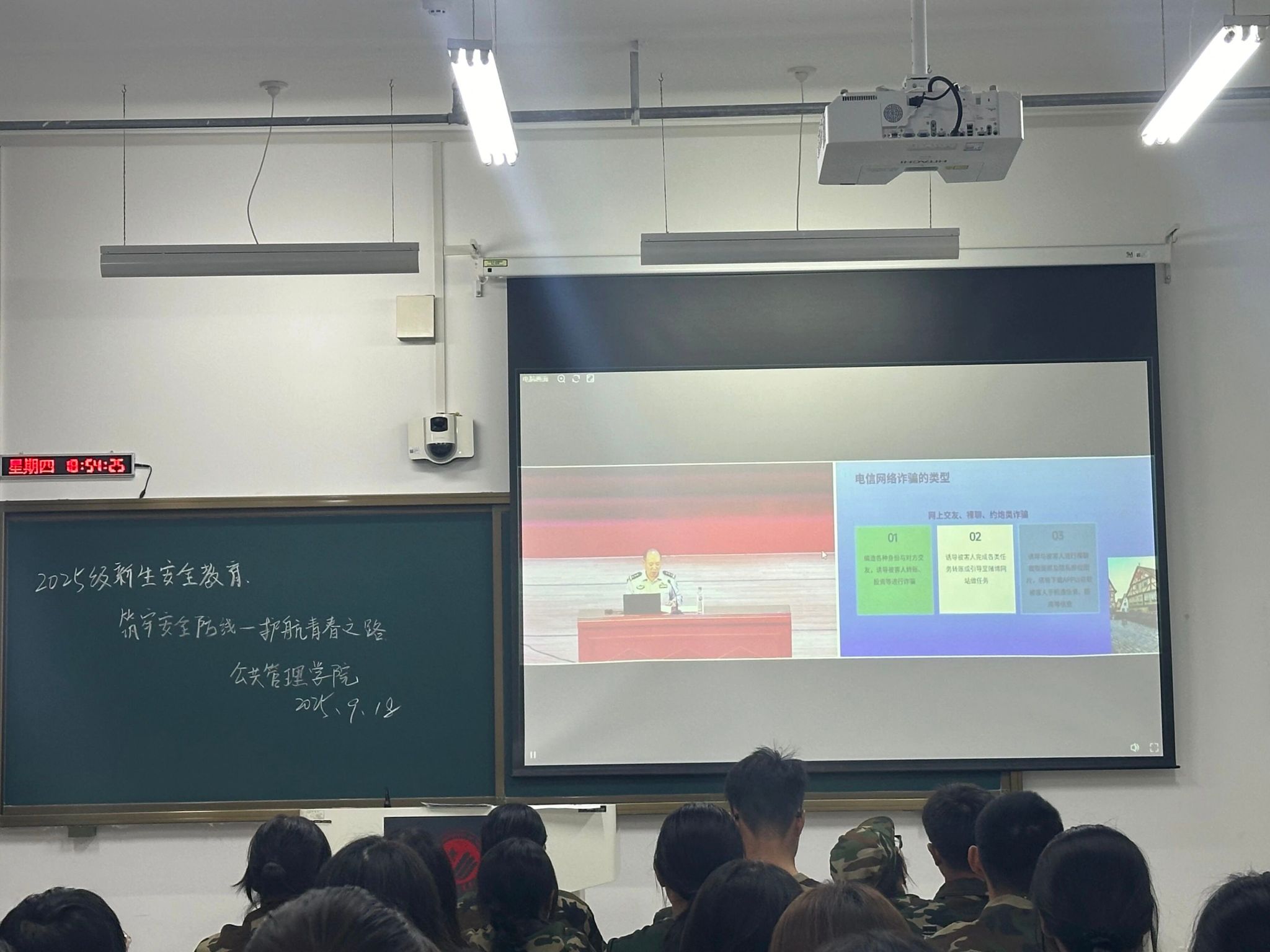 为增强同学们的安全防范意识和自我保护能力,有效保障同学们的人身与财产安全,进一步推进建设平安校园。pg电子官方网站于9月18日在北湖东区主楼205教室组织开展25级新生安全教育专题学习活动,通过观看讲座,增强同学们的安全意识。