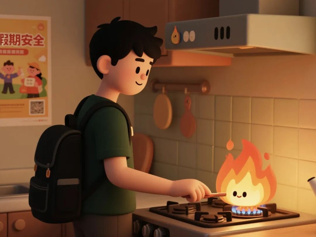 假期居家,要注意用火用电安全,厨房用火不离人,电器使用后及时关闭电源。