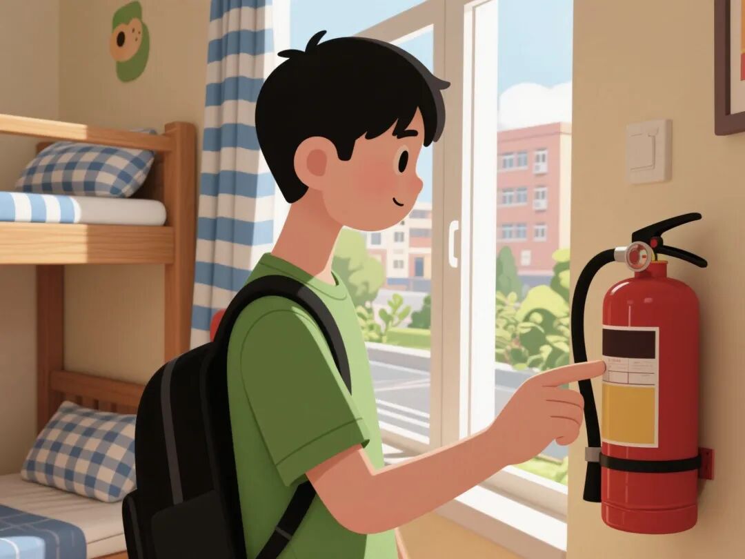 假期留校或外出住宿,务必检查居所消防设施是否完好,熟悉逃生通道。