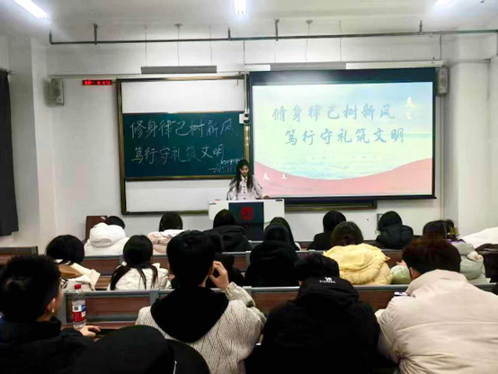 此次活动由团支书孙雅男主持。团课伊始,孙雅男阐释“树文明新风,争做文明学生”核心理念,强调了青年强化道德修养,树立自律意识,践行文明规范的重要性。她希望同学们能够做到“六个文明”,包括行为文明、安全文明、宿舍文明、教室文明、网络文明、就餐文明。积极促进全体同学在日常生活中养成文明习惯、提升文明素养。