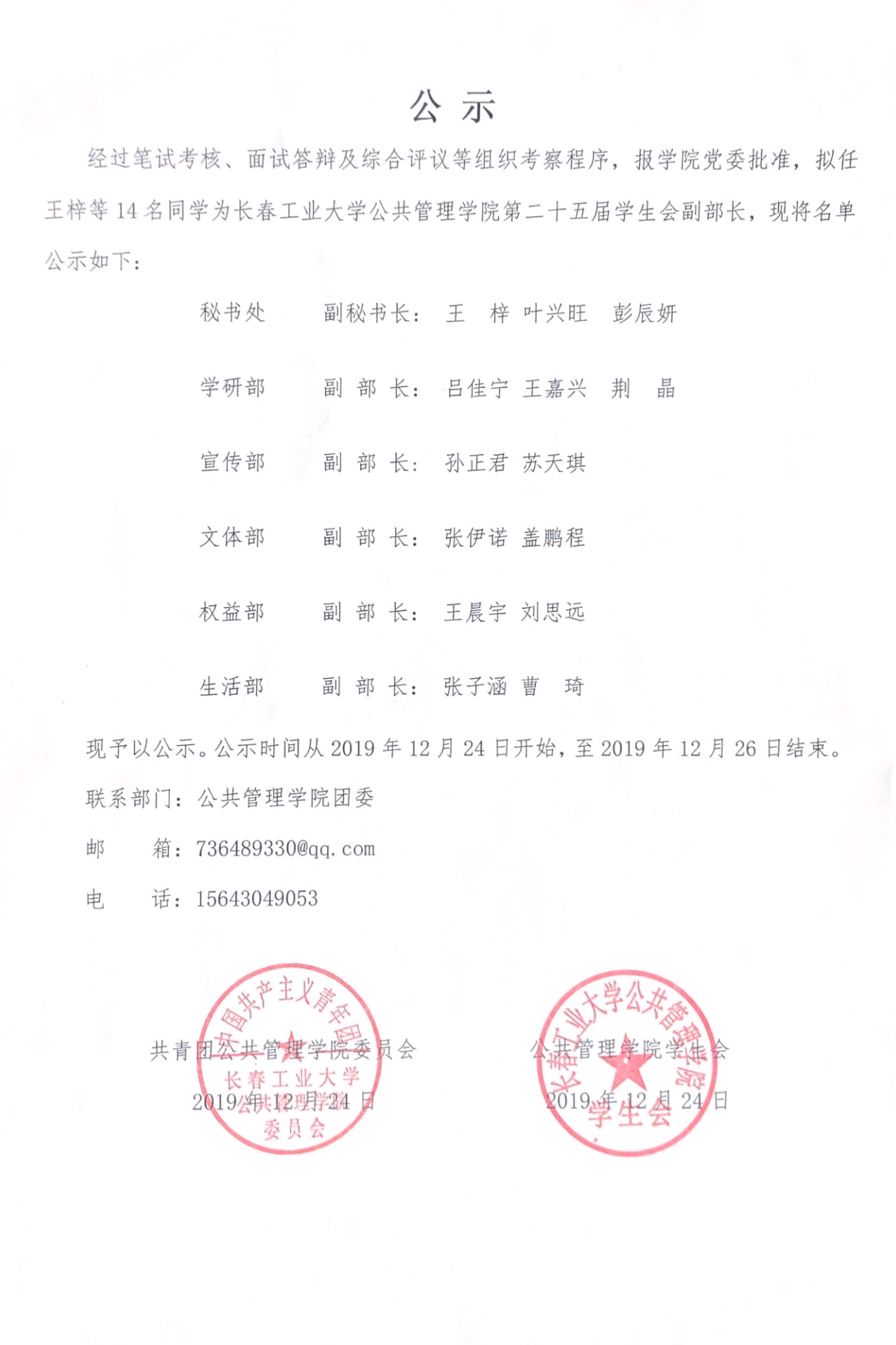 干部名单公示