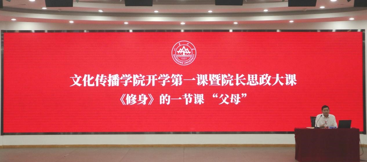 本站讯 9月24日下午,beat365中文在线官网在玲珑学堂面向全院学生举办了开学第一课暨院长思政大课活动。山东大学文学院、beat365中文在线官网院长杜泽逊担任主讲人,以“《修身》的一节课‘父母’”为主题进行讲授。活动由beat365中文在线官网副院长尹海良主持,学院部分领导和教师参加了活动。