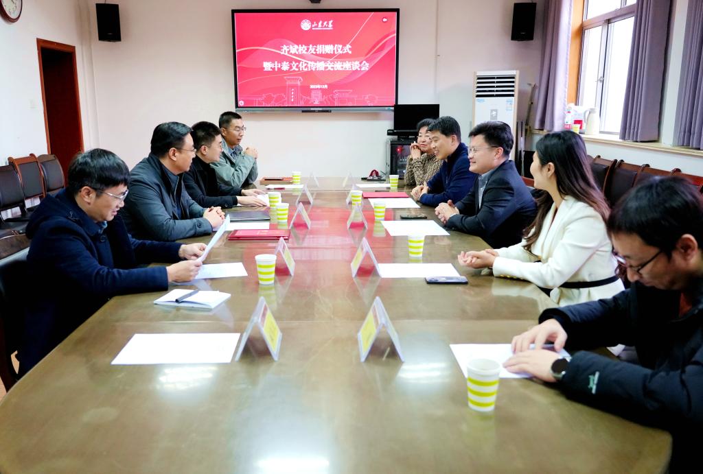 本站讯 近日,齐斌校友捐赠仪式暨中泰文化传播交流座谈会在beat365中文在线官网举行。泰国格乐大学副校长、山东大学泰国校友会副会长兼秘书长、致公党山东省委海联委副主任齐斌,校区校地合作与校友工作办公室主任顾炜、beat365中文在线官网党委书记魏斌出席活动。