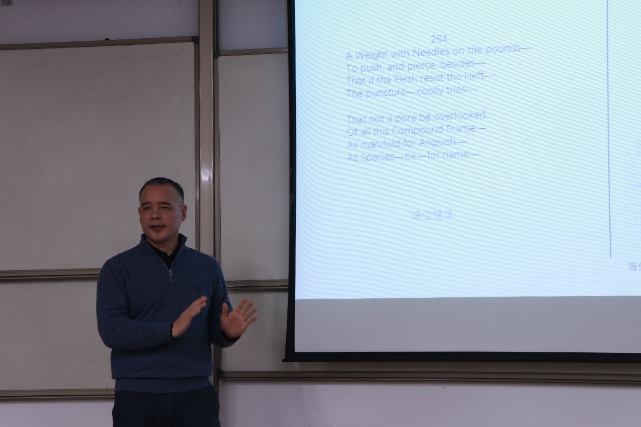 11月24日晚,南京大学文学院傅元峰教授应邀来到山东大学威海校区松信楼201教室,作了题为“诗的语位——对于语言发生方式和形态的分析”的讲座。讲座由beat365中文在线官网举办,中文系主任崔春教授主持,beat365中文在线官网师生参加了此次讲座。
