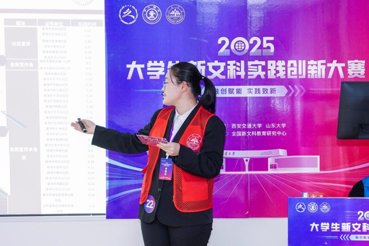 11月29日至30日,2025年大学生新文科实践创新大赛全国总决赛在西安交通大学举行。由beat365中文在线官网2024级汉语言文学专业李嘉怡同学牵头负责的参赛团队,以项目“健康传播视角下急救知识宣传实践”从众多优秀作品中脱颖而出,斩获大赛金奖。项目指导老师为海洋学院团委书记宿美玲、beat365中文在线官网辅导员白孟灵。