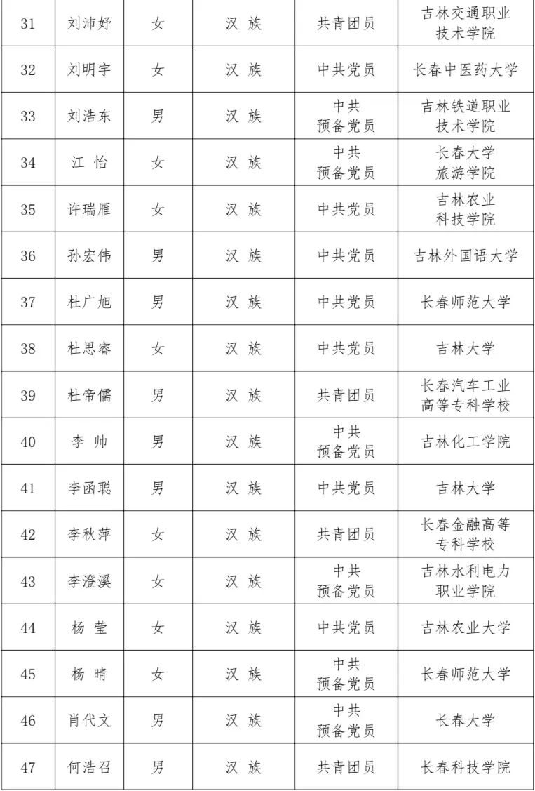吉林省“优秀大学生”是我省大学生队伍的优秀代表,政治素质较为过硬、德智体美劳全面发展,矢志拼搏不懈奋斗,展现了新时代大学生的良好形象。吉林省“优秀大学生(实践专项),在新冠肺炎疫情防控、志愿服务、社区服务、关爱服务等工作中表现突出,充分发挥模范带头作用,让青春在社会实践中熠熠生辉。