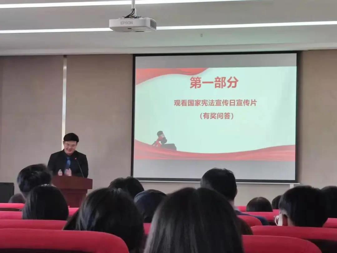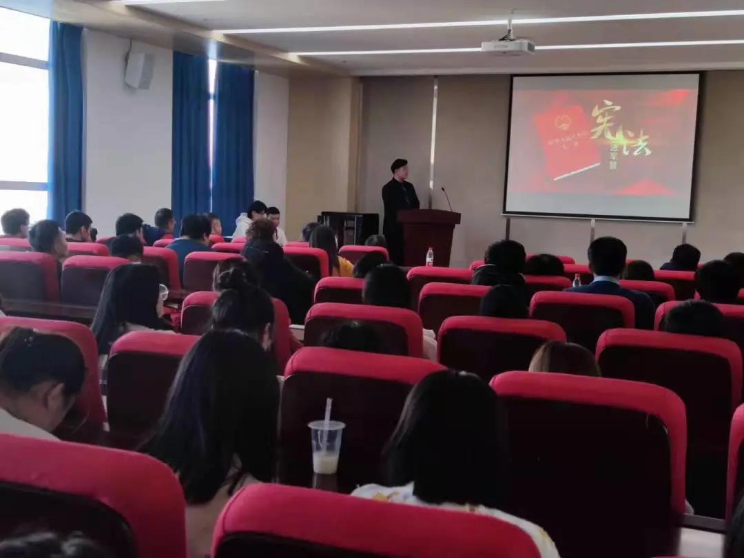 12月4日由法学社主办的,pg电子官方网站法学系2019级和2020级同学参加参加的宪法日主题活动,在北湖东区主楼301举行,本次宪法日活动的主题是“ 弘扬宪法精神 倡导法治之风 ”。pg电子官方网站团委书记陈磊,法学系书记冯娜、副主任宋浩及部分法学系教师受邀参加了本次活动。