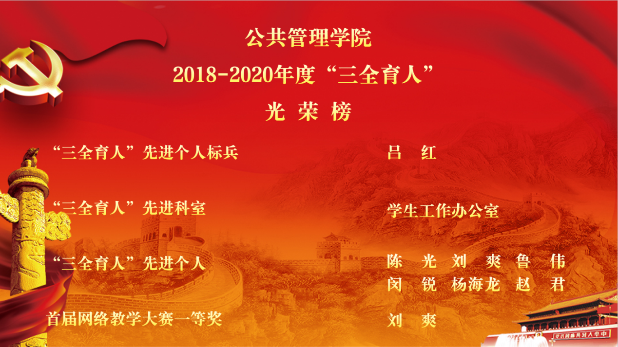 9月10日,学校党委于南湖校区学术报告厅隆重举行2018-2020年度“三全育人”工作表彰大会,pg电子在此次活动中荣获“先进个人标兵”、“先进科室”、“先进个人”称号及pg电子官方网站首届网络教学大赛一等奖。