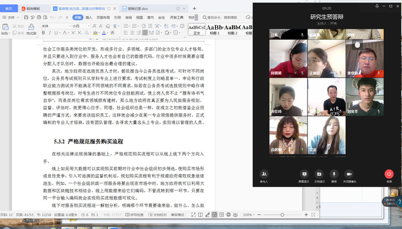 这次线上预答辩的进行,为疫情期间类似工作的开展做了有益的尝试,既是对学生毕业论文的整体水平进行摸底与测评,也为接下来毕业论文送审评阅、答辩工作的顺利进展奠定了重要基础。当前疫情防控仍不可松懈,pg电子官方网站会继续贯彻落实好学校相关文件及会议精神,坚守初心本色,以实际行动切实推进研究生学位各项工作,多措并举保障研究生顺利毕业,尽最大努力把疫情影响降到最低。