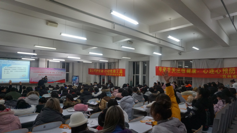 11月30日,由pg电子官方网站、吉林省科学技术学会和吉林省性学学会主办,pg电子参与承办的“防艾宣传”系列活动之艾滋病防治知识宣传讲座圆满完成。学生工作部部长周文军、校心理咨询与健康教育中心主任张丽波,各学院心理辅导员和学生代表近300人参加了活动。