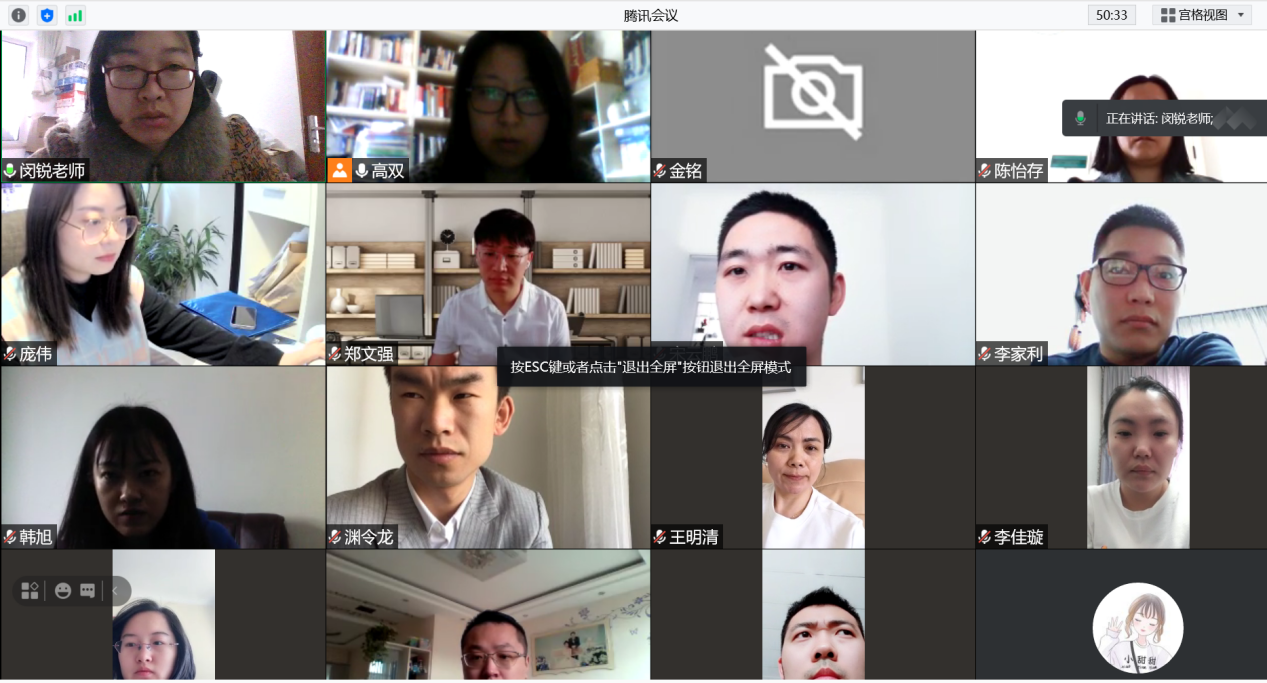 此次预答辩共155名毕业研究生参与,整体效果良好,网络流畅,音频清晰,全程未出现卡顿情况。所有参加预答辩的学生,先自述4分钟,主要包括论文主要观点和论文目前存在的问题,并由答辩组老师用10-15分钟时间给每位学生提出论文进一步修改的建议。整个答辩过程中,答辩组老师根据学生撰写的论文提出了切实可行的建设性建议,同时,学生对于答辩组老师提出的建议表示认可,并做了认真记录。答辩结束后,学生们在群里感谢老师们提出的建议与鼓励,均表示尽早与导师沟通,认真、严谨、负责地努力完善论文,展现出满满的信心。