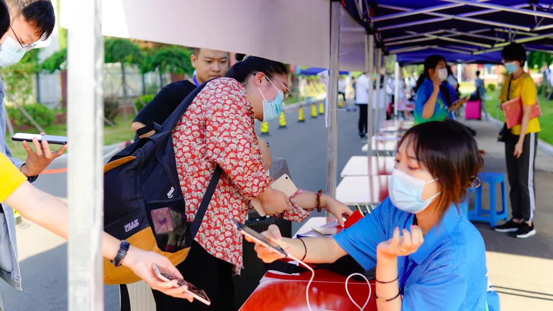 在疫情常态化工作的背景下,为了保障学生们的安全,pg电子积极配合学校防疫工作的安排,坚决遵守防疫工作要求。学院团委提前挑选了八十九名志愿者同学,并对他们进行了专业的志愿服务培训。新生报道在校门口进行消毒、核验身份、核验健康码及行程码,再由志愿者引导至各年级报道处完成报道手续。