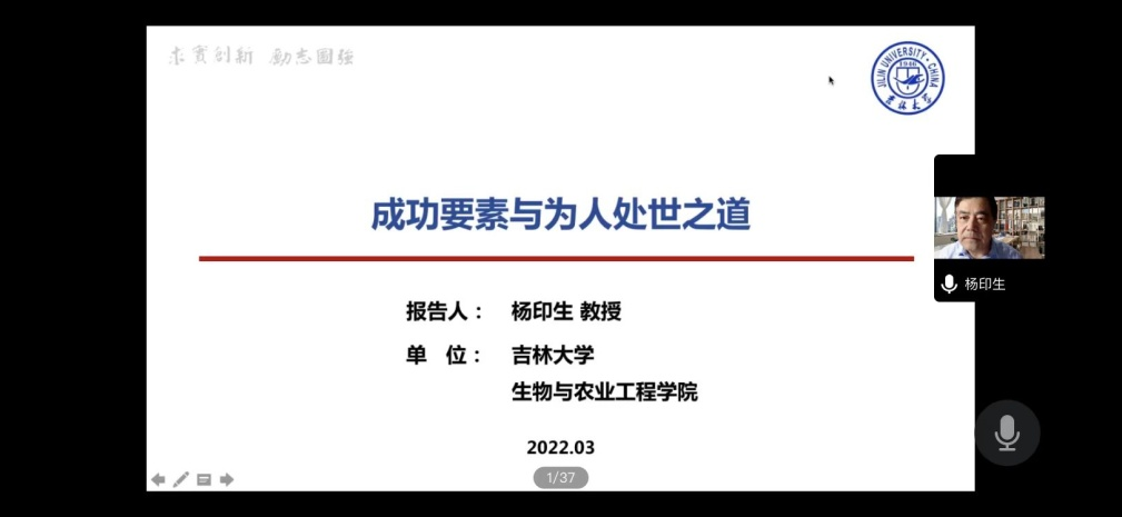 为了加强师生与校外专家之间的学术交流,拓宽学术视野,2022年4月,pg电子官方网站公共管理系特邀吉林大学生物与农业工程学院杨印生教授在线做了一场题为“成功要素与为人处世之道”的学术讲座。
