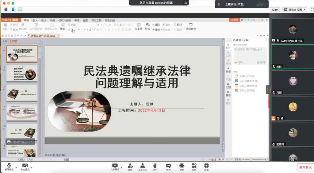 pg电子官方网站“法律大讲堂”第三季“民法典与美好生活同行”第二讲《<民法典>遗嘱继承法律问题的理解与适用》于2022年4月19日17:30在腾讯会议线上开讲。本期主讲嘉宾是长春市汽车经济技术开发区人民法院审判委员会委员、立案庭庭长沈楠法官。讲座由法学系主任宋浩老师主持,法学系百余名师生旁听讲座。