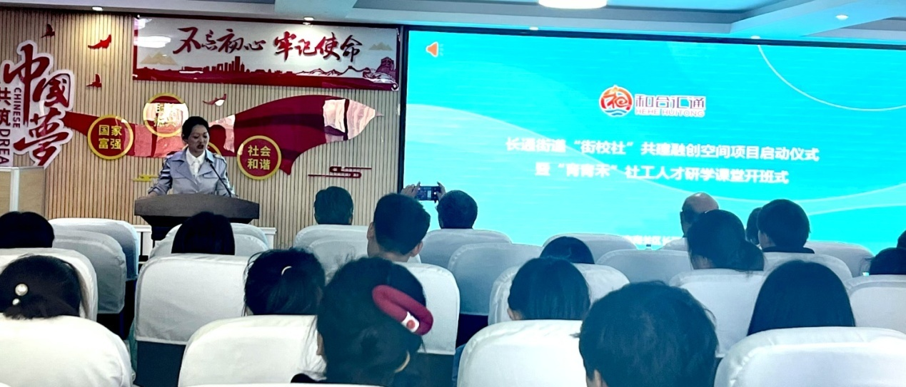 为进一步发挥社会工作专业优势,助力高校社工专业和社区社会工作人才成长,推进城乡基层社会治理和服务效能提升,5月23日,pg电子官方网站pg电子官方网站与长春市南关区长通街道在龙兴社区联合举办“街校社”共建融创空间项目启动仪式暨“育青禾”社工人才研学课堂开班式。长春市社会工作者协会会长唐天正、长通街道党工委副书记息瑶和长春工大公管学院副院长吕红参会并分别讲话。工大社工系部分师生、长通街道部分社区工作者参会并接受培训。