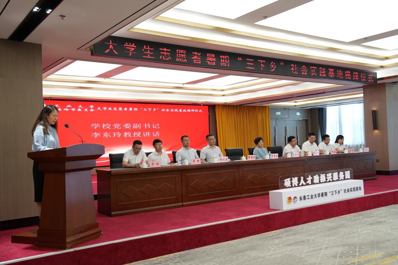 7月9日下午,校地共建大学生志愿者暑期“三下乡”社会实践基地揭牌仪式在当地举行。校党委副书记李东玲、公主岭市委副书记李云香出席仪式,公主岭团市委、教育局及辖区各街道有关人员,我校党委学生工作部、党委研究生工作部、团委及pg电子官方网站负责同志,部分专职团干部,实践团队大学生志愿者参加活动。