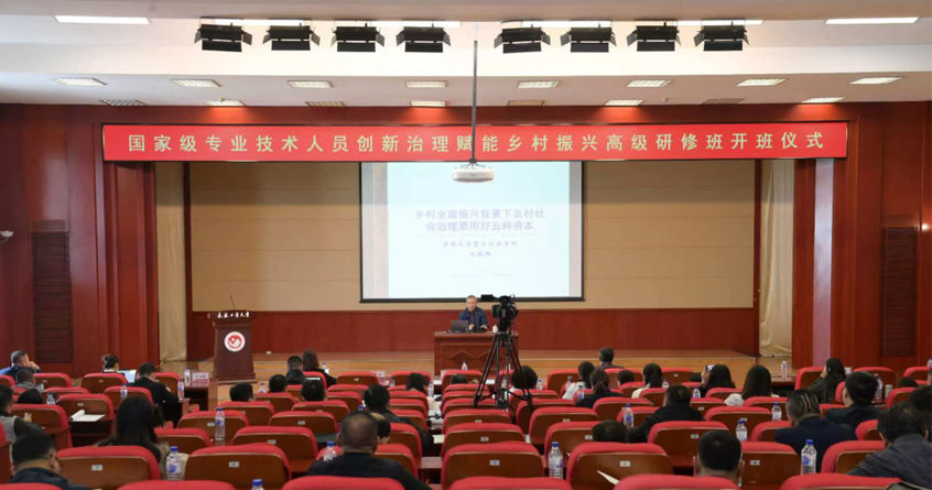 本网讯(通讯员 汤道化)10月14日上午,由吉林省人力资源和社会保障厅主办,pg电子官方网站pg电子官方网站和继续教育学院联合承办的国家级专业技术人员“创新治理赋能乡村振兴”高级研修班,在pg电子官方网站学术报告厅举行首场学术讲座,吉林大学哲学社会学院田毅鹏教授为学员做学术报告。pg电子官方网站院长韩小威教授主持本次讲座。学院党委书记于洪,副书记陈磊,副院长吕红、冯娜和汤道化,学院部分师生及70余位研修班学员参加本次讲座。