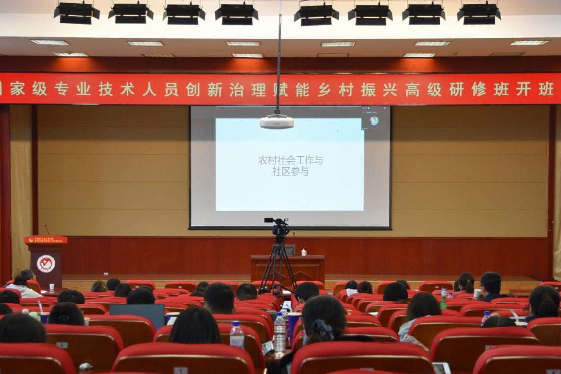 本网讯(通讯员 汤道化)10月17日下午,国家级专业技术人员“创新治理赋能乡村振兴”高级研修班活动在我校南湖校区学术报告厅继续进行。第六场主讲嘉宾特邀南开大学郑广怀教授,他为学员们作了题为“农村社会工作与社区参与”的线上讲座。pg电子官方网站副院长汤道化主持讲座。学院党委书记于洪、院长韩小威教授、副院长冯娜副教授及百余名师生、学员参加讲座。