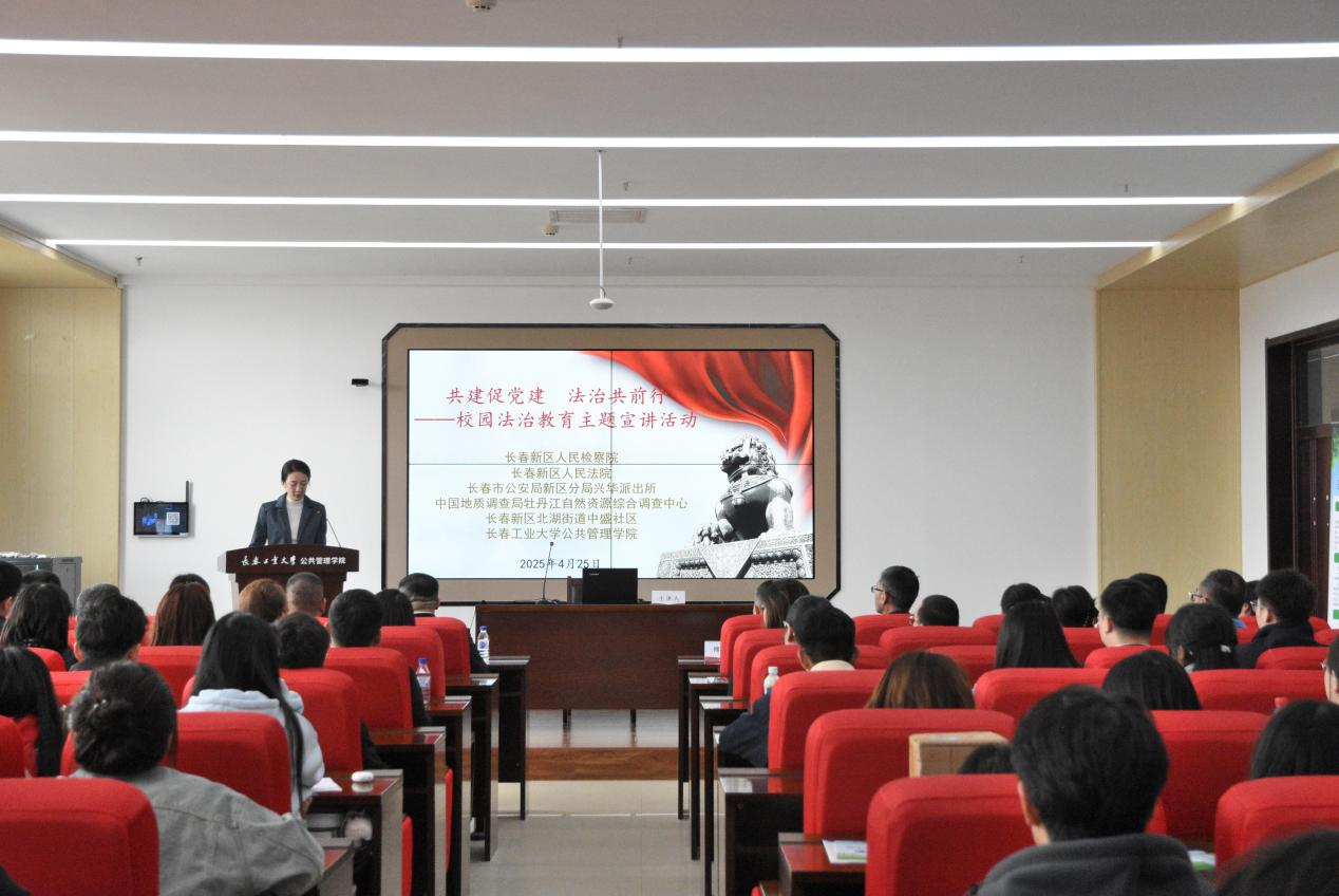 (通讯员:郭千钰,石雨灵)党的建设是事业发展的基石,以共建凝聚合力、激发活力,更是推动党建工作提质增效的重要举措。为进一步增强基层党组织凝聚力与党建活力,深入贯彻党的二十届三中全会精神,落实《关于加强新时代法学教育和法学理论研究的意见》,深化协同育人,提升学生法律素养与实践能力,2025年4月25日13:30,pg电子官方网站在北湖东区主楼301教室举办“共建促党建,法治共前行”校园法治教育主题宣讲活动。