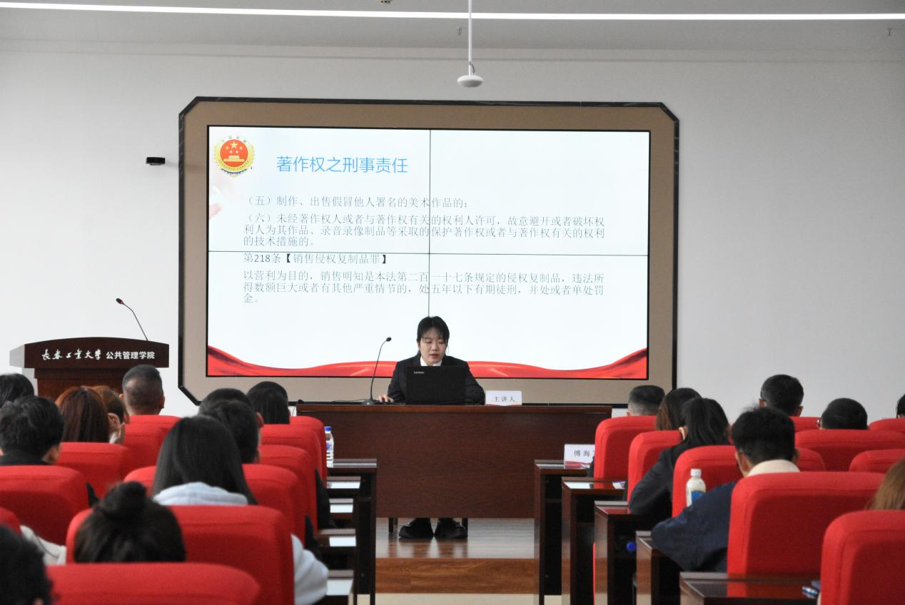 4月26日是“世界知识产权日”,长春新区人民检察院张洺瑞检察官作了《知识产权保护:从创业自由到法律边界》的主题讲座。讲座从著作权、专利权、商标权的法律规定入手,深度解读了各类典型案例,阐释了知识产权检察综合履职的办案类型。强调了保护知识产权对维护创新者利益、促进市场竞争、提升综合国力的必要性。
