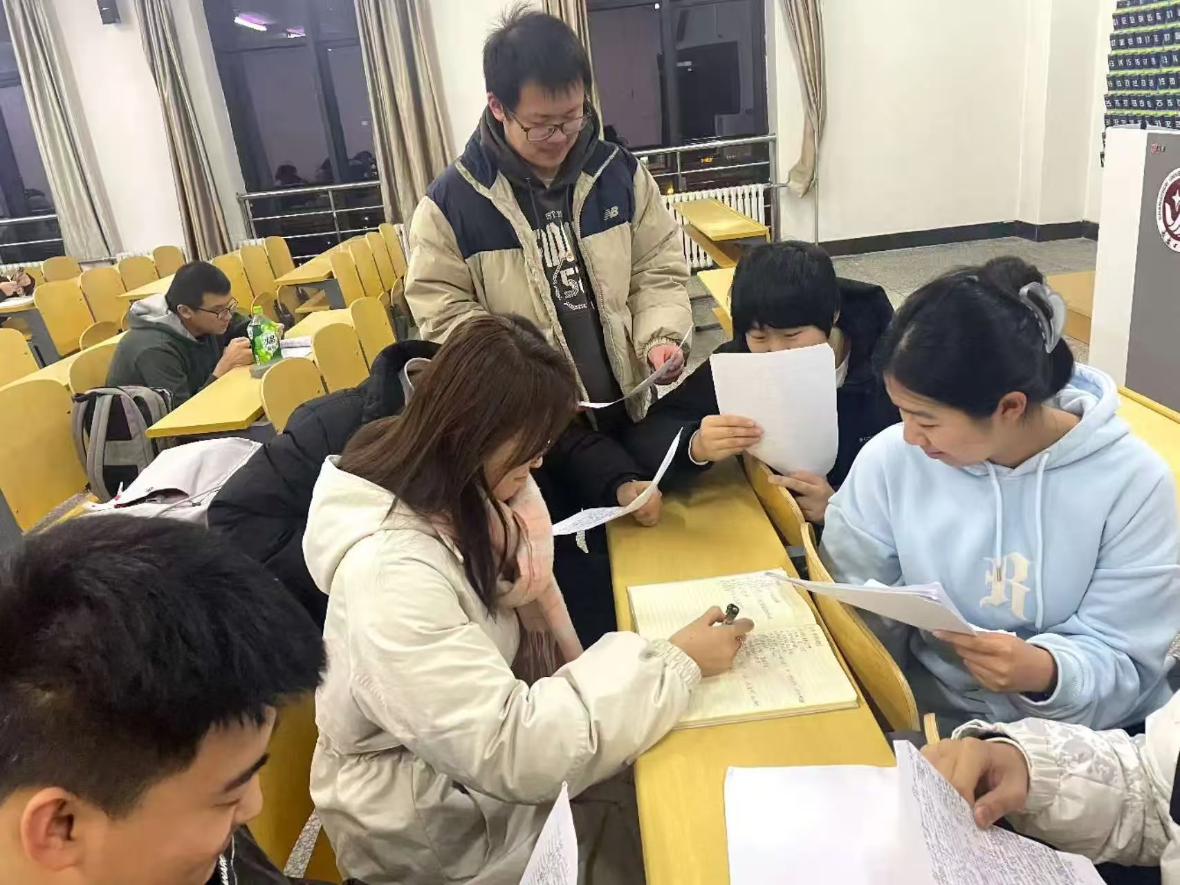 法学专业主要采用学习小组的方式,学习内容包括整理法学笔记,英语听写,进行法考网课刷题。早晚自习为同学们提供了一个良好的学习交流平台,营造了浓厚的学习氛围。同学们在自习过程中相互交流学习心得、分享学习资料,遇到问题时共同探讨解决,这种互帮互助的学习氛围有利于提升学习效率。