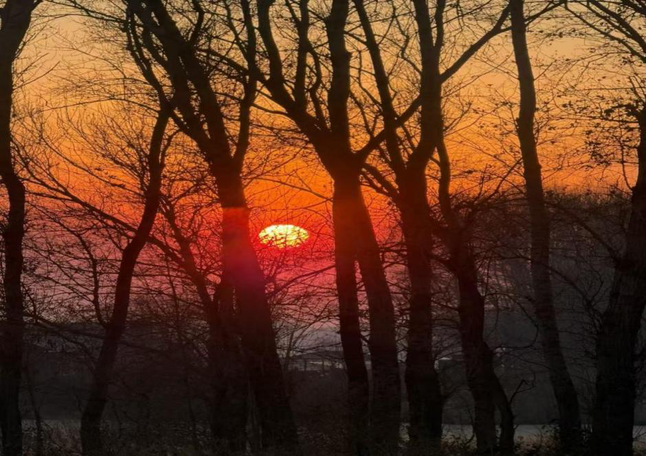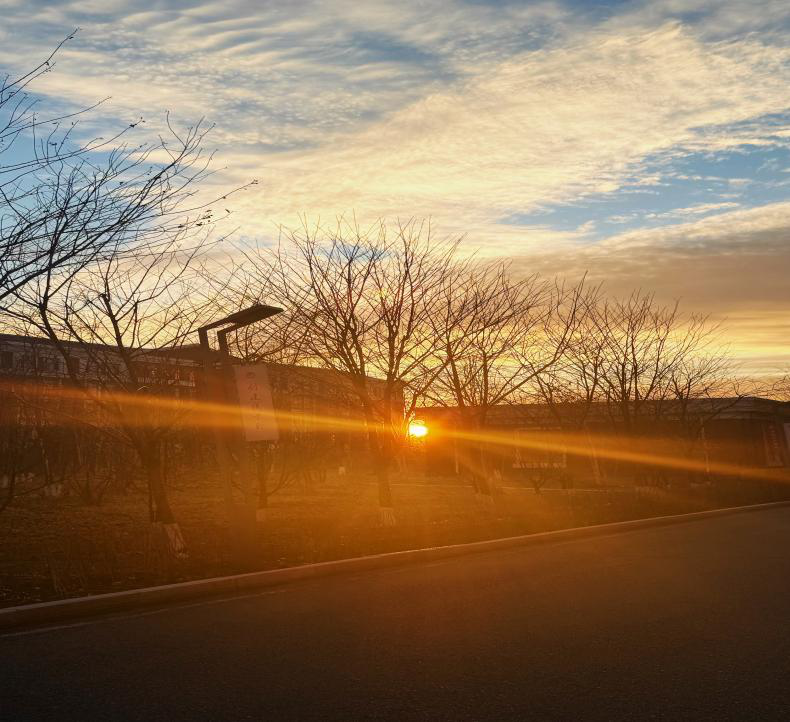 秋日傍晚,结束一天忙碌的工作,窗外落日把校园晕染成暖橙色,所有疲惫都被落日余晖消解,这是独有的治愈瞬间。