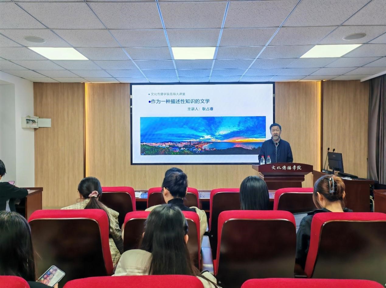 讲座开始后,耿占春老师首先简要介绍了人文学科当中对于描述的使用。耿老师认为,侧重于对人的情感世界的描述的文学是一种描述性的知识。描述性知识与作为规则的规范性知识之间存在着内在张力关系。随着时间的推移,规范性知识不断减弱、解体、重构,而描述性知识的作用则越来越突出。耿老师引用章学诚的《文史通义》中的观点,论证了作为描述性知识的文学有着打破既有规范冲破束缚的作用。